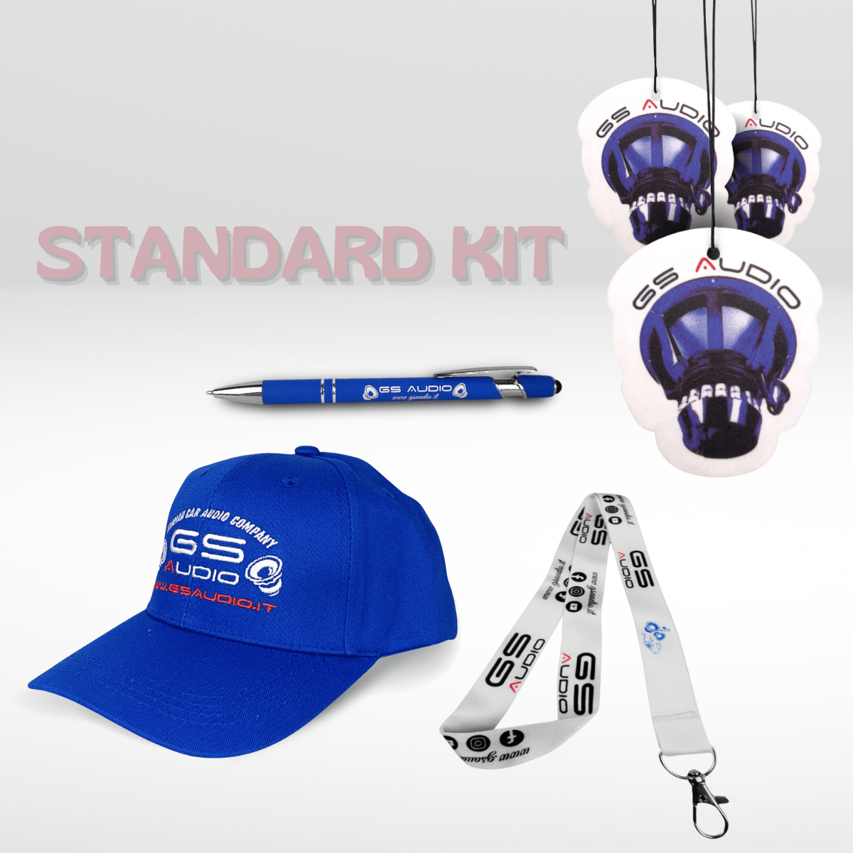 Gadget KIT Standard Package The kit includes an ideal product combination of useful items at a special price. Includes:1 Cap Baseball Model1 Ballpoint Pen with Black ink1 Lanyard (keychain strap)3 Car Fragrances (Pine Fragrance)1 Prespaced Sticker random color